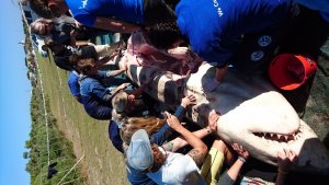 First, everything was measured; from the total length, down to the precaudal and interdorsal measurements, these were all taken as it is needed for future study of white shark biology and research. The dorsal fin was half a metre on its own and the jaw gape was also half a metre in height and width. The shark also had a wound between her pectoral fins which was strange as it doesn’t correlate with many bite wounds.