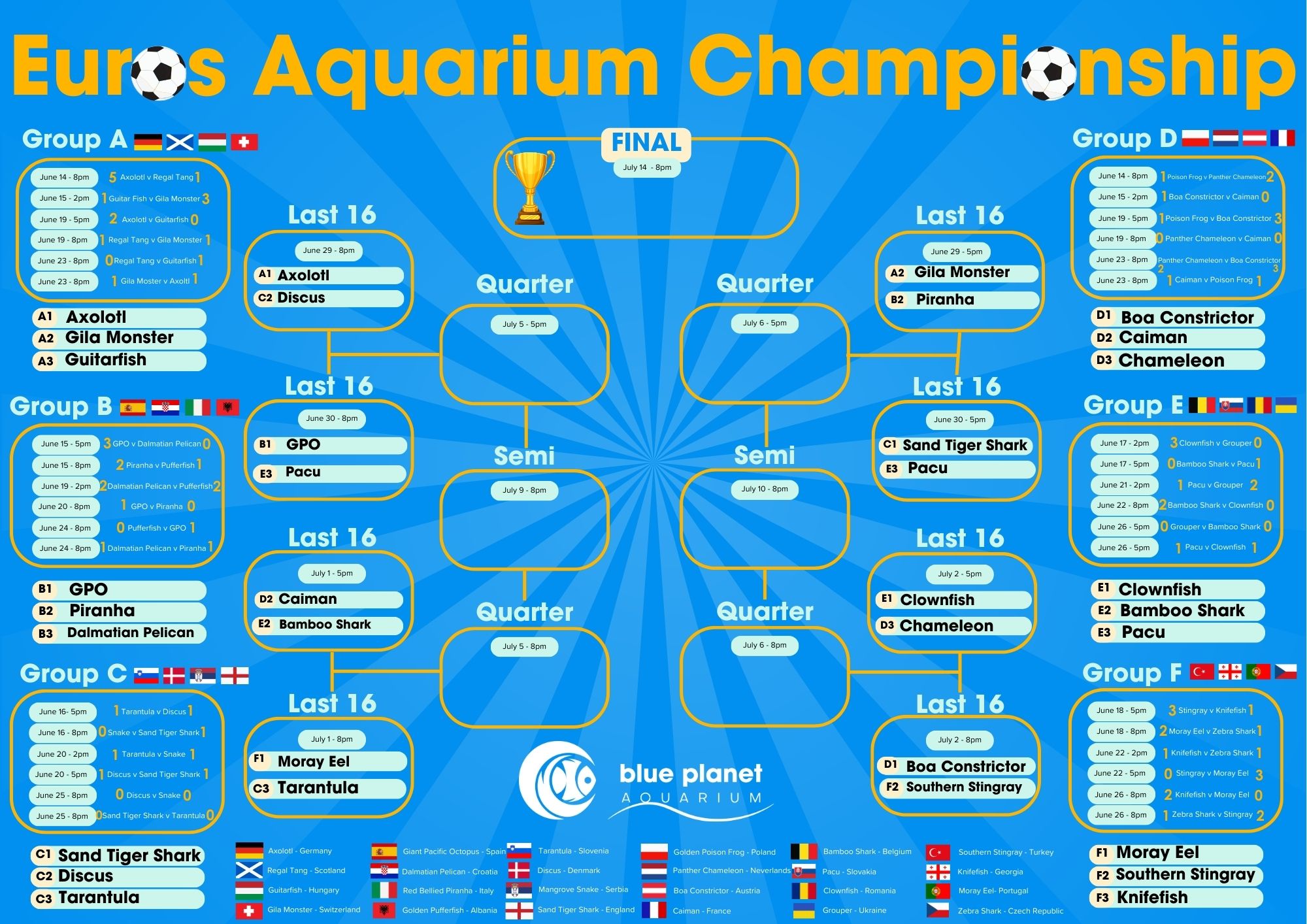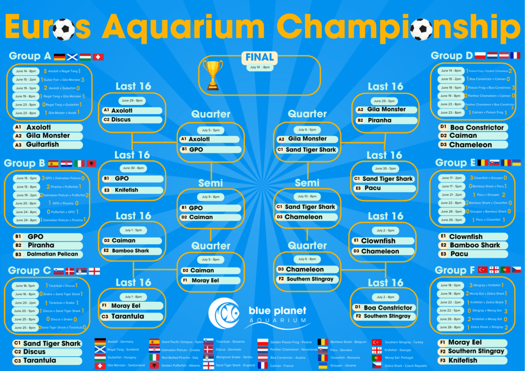 Join us as we follow the progress of Euro 2024 through our species at Blue Planet Aquarium. Each country will be represented by a different animal, giving you the chance to learn all about them as they progress through the tournament, but…. There can only be one WINNER! Who do you think will be crowned victorious?