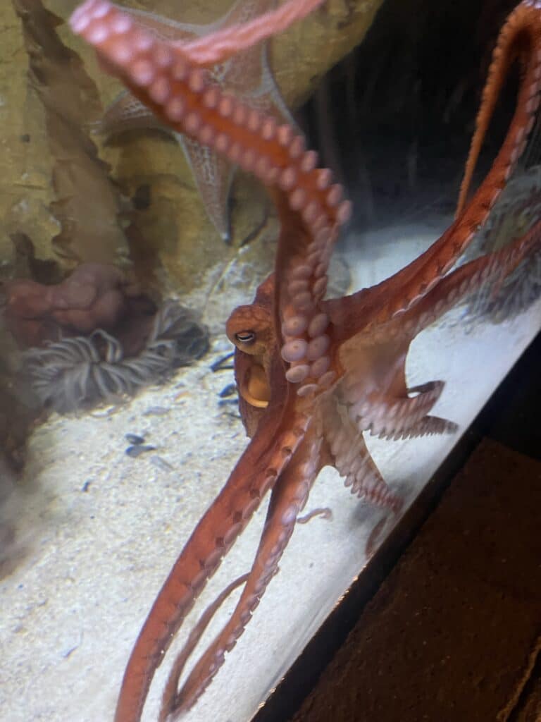 We are saddened to announce Kevin, our Giant Pacific Octopus has passed away. Kevin had reached maturity which sadly brought with it a natural end to his life cycle. He was closely monitored by our aquarist team during what is formally known as senescence. During this process an octopus will stop caring for itself, reduce food intake, and slow down general day to day activity. Our team are heartbroken to say goodbye to Kevin, and we’ve no doubt that our Annual Pass holders, guests and school visitors will be too.